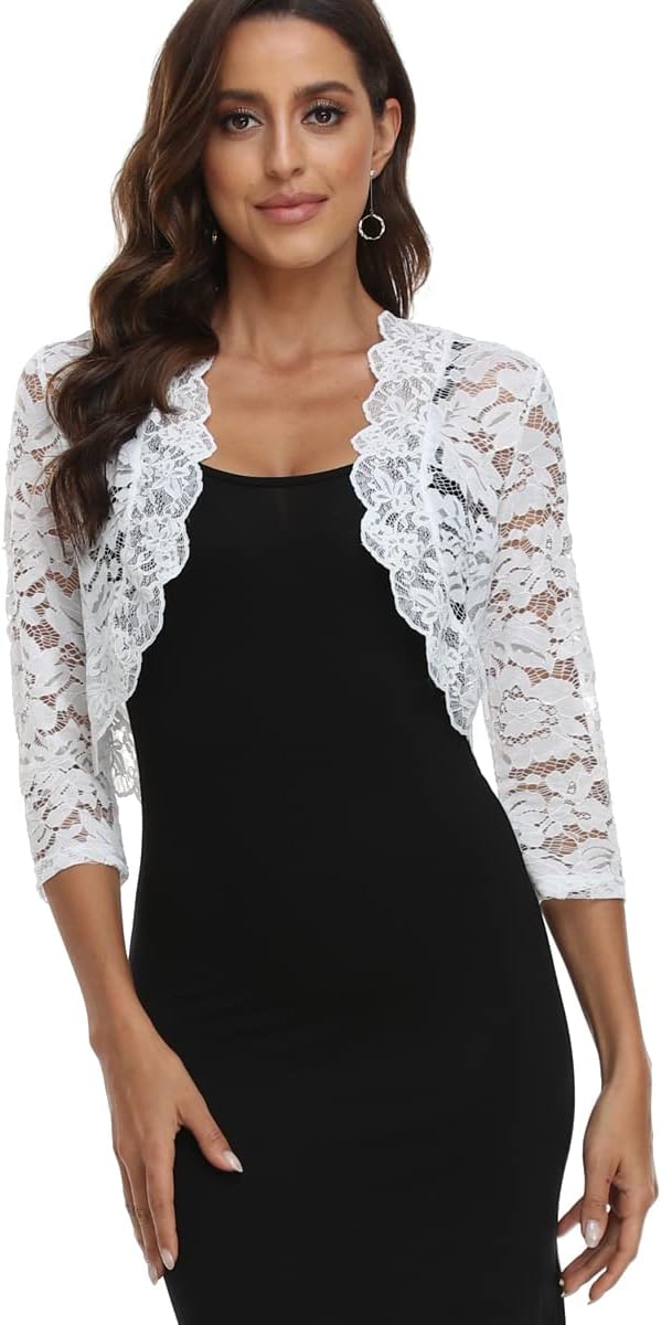 PEIQI Women's 3/4 Sleeve Sheer Crochet Lace Bolero Shrug Cropped Cardigan S-XXL