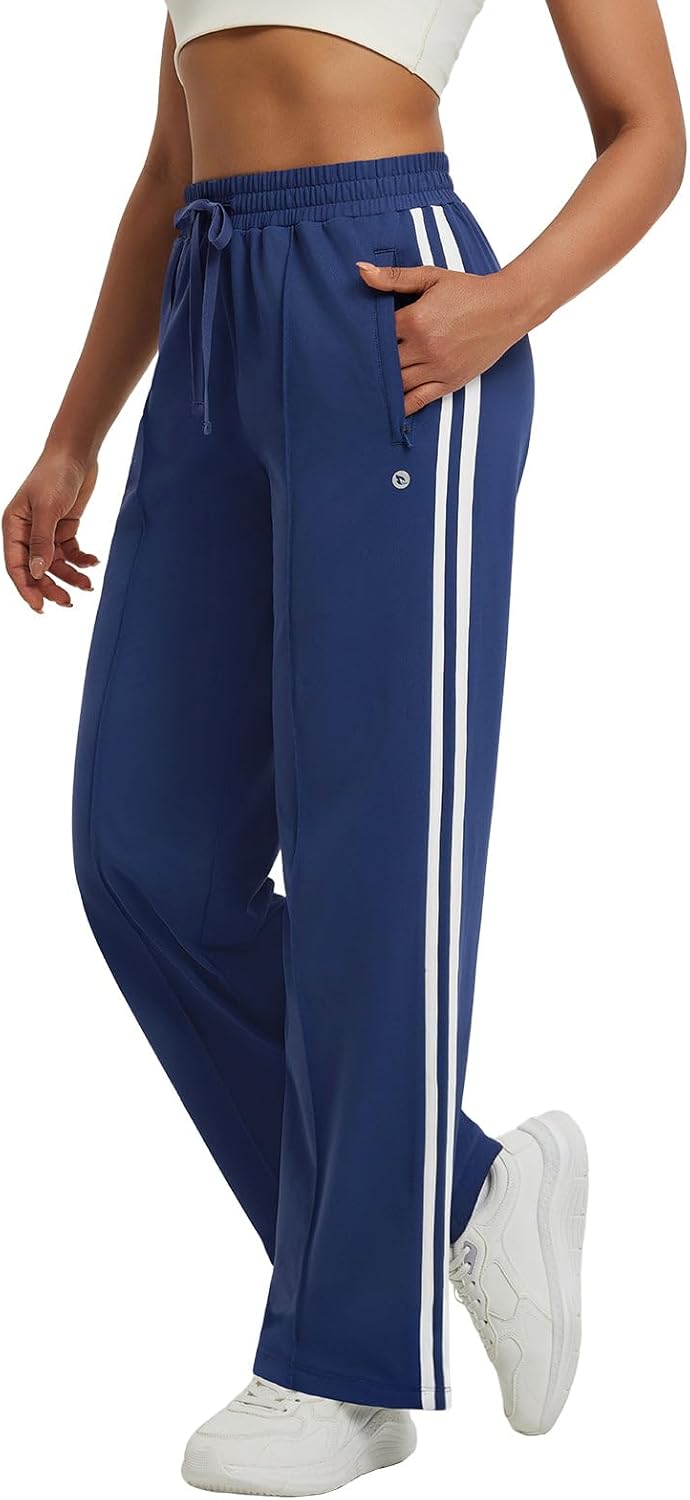 baleaf Women's Fleece Lined Pants Wide Leg Track Pants with Zipper Pockets Loose Fit Straight Leg Pull on Pants for Winter