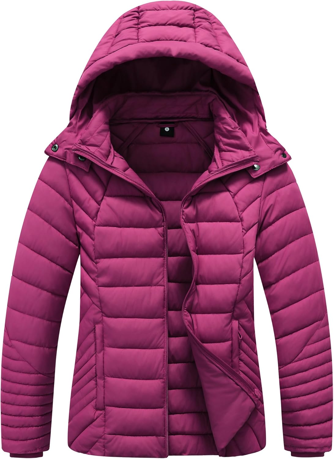 Women's Quilted Down Coat | Lightweight, Windproof, Waterproof, Detachable Hood, Warm for Winter Travel
