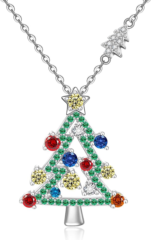 Christmas Necklace Christmas Tree Necklace for Women Sterling Silver Green Tree Pendant Xmas Gift
