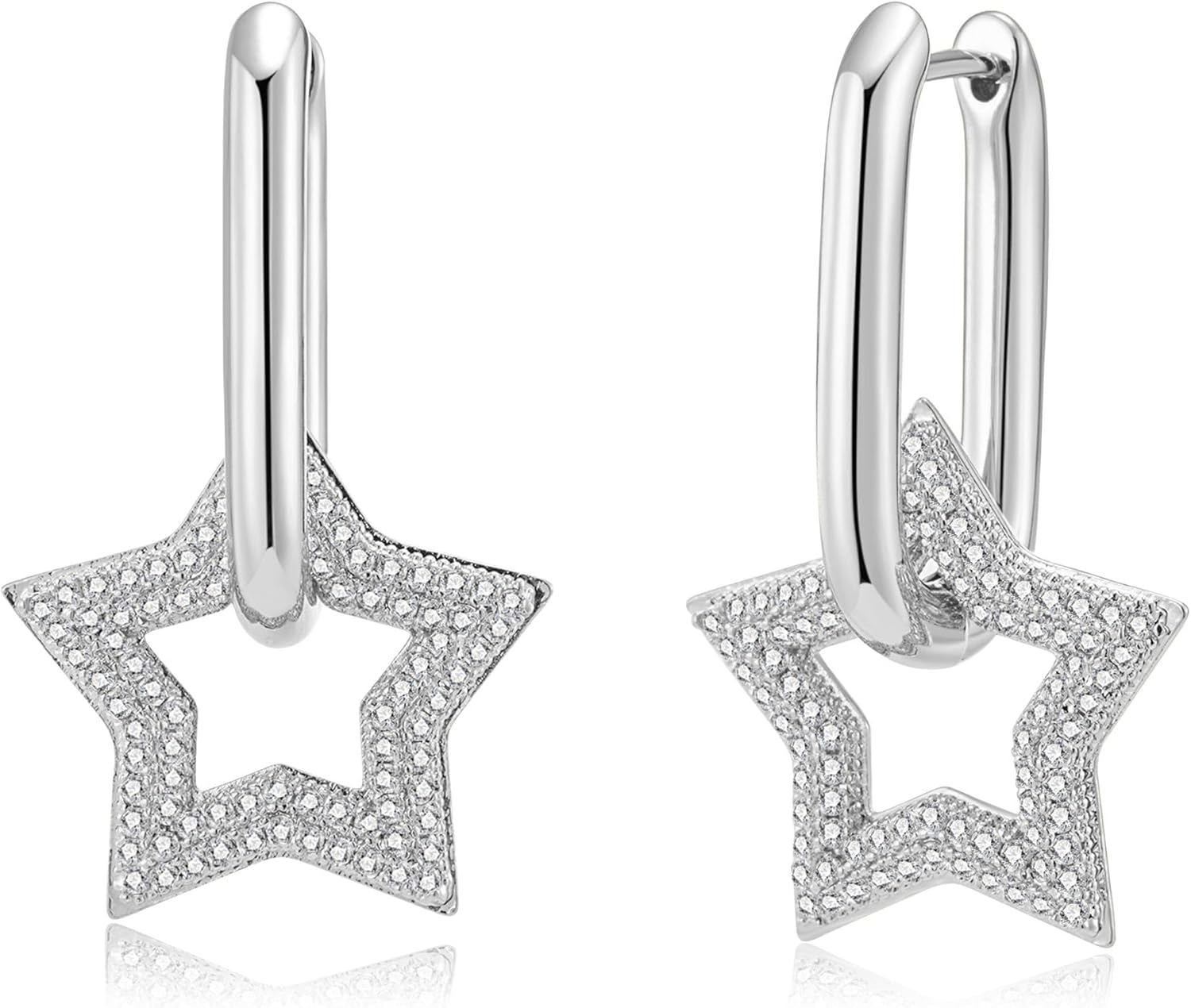 Austrian Crystals Paperclip Drop Earrings for Women 14K Gold Plated Double Huggie Dangle Earrings Hypoallergenic Sparkly Jewelry