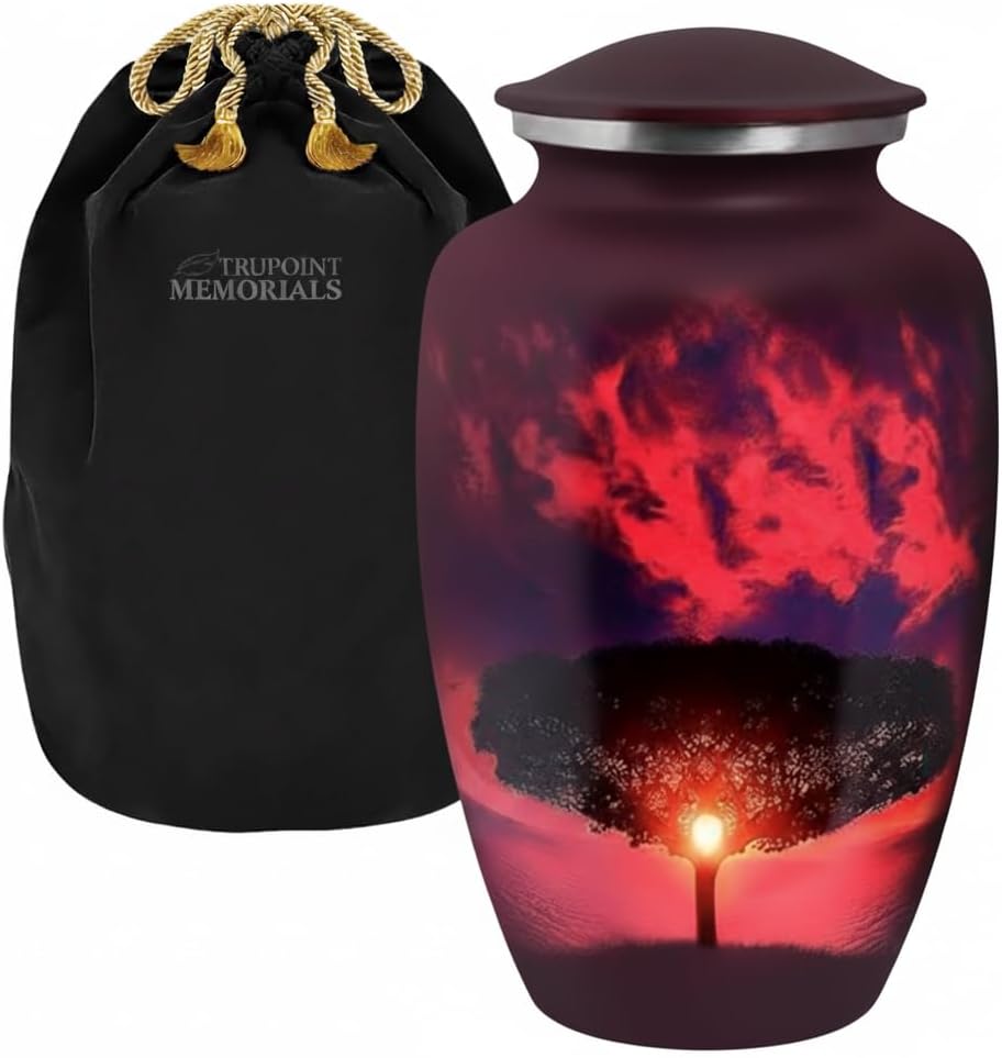 Trupoint Memorials Cremation Urns for Human Ashes, Tree of Life Decorative Burial Urn for Adult Men and Women, Large Red Sunset