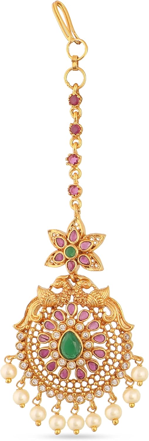 TARINIKA Antique Gold Maang Tikka Indian Headpiece Jewelry for Wedding & Festive Occasions | CZ Stone & Brass Alloy | Traditional Hair Accessories for Women