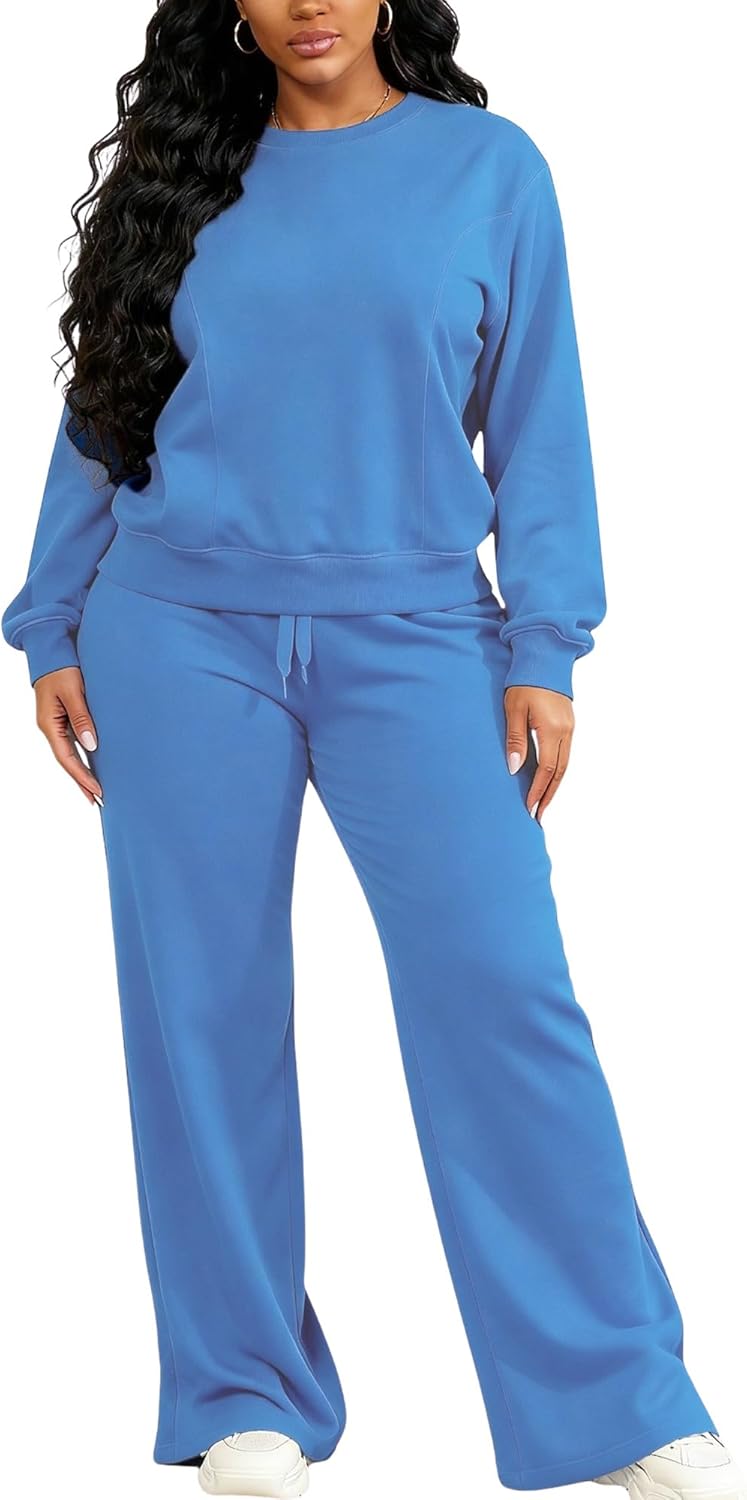 MOEENCN Women 2 Piece Outfits Sweatsuit Lounge Sets Casual Travel Sweatshirt And Wide Leg Tracksuit Matching Set