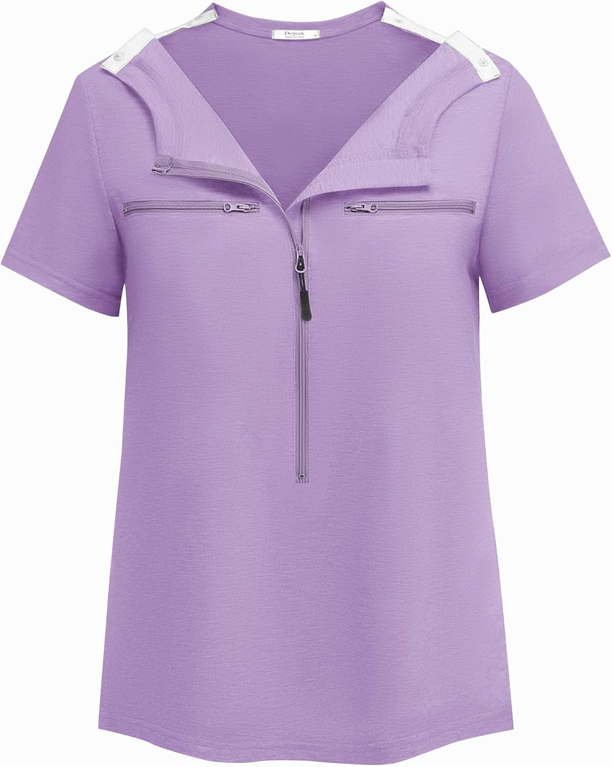 Deyeek Chemo Shirts for Port Access Women 2 Side Snap Short Sleeve Shoulder Surgery Rotator Cuff Dialysis Recovery Shirts
