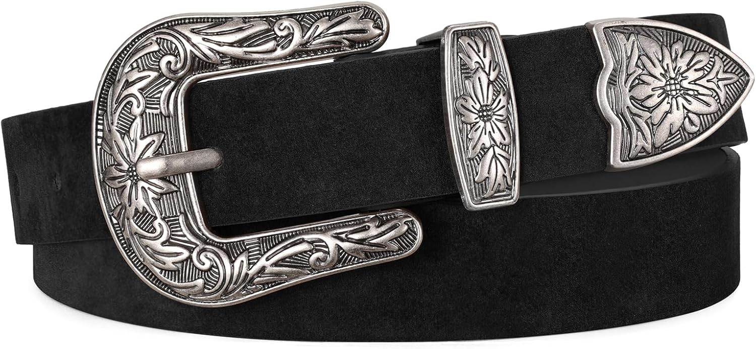 JASGOOD Women Leather Belts Ladies Vintage Western Design Black Waist Belt for Pants Jeans Dresses