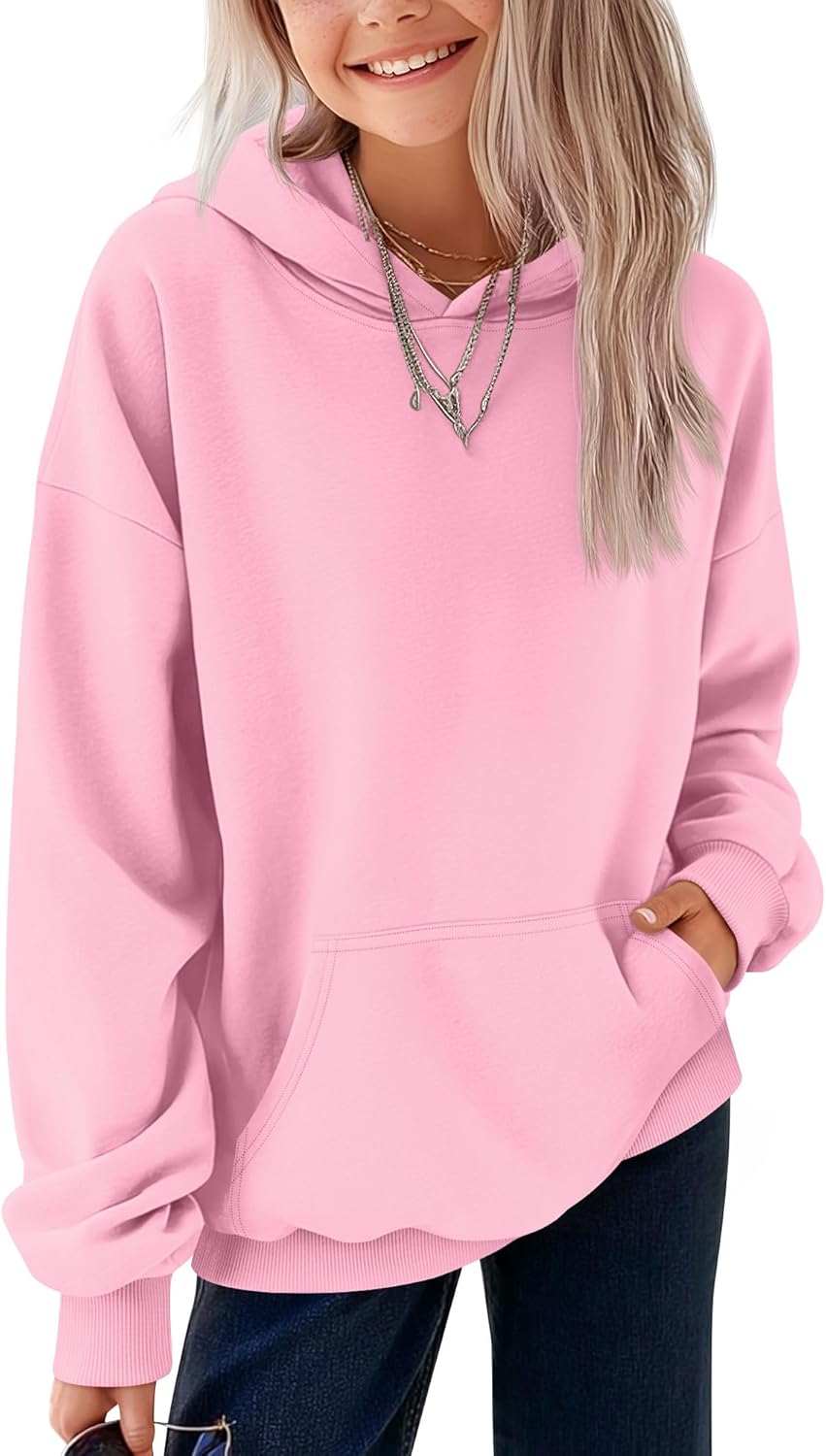 Toddlers' and Girl's Hoodies Lightweight Oversized Long Sleeve Hooded Sweatshirt Causal Pullover Tops with Pockets(Pink,5-6 Years)