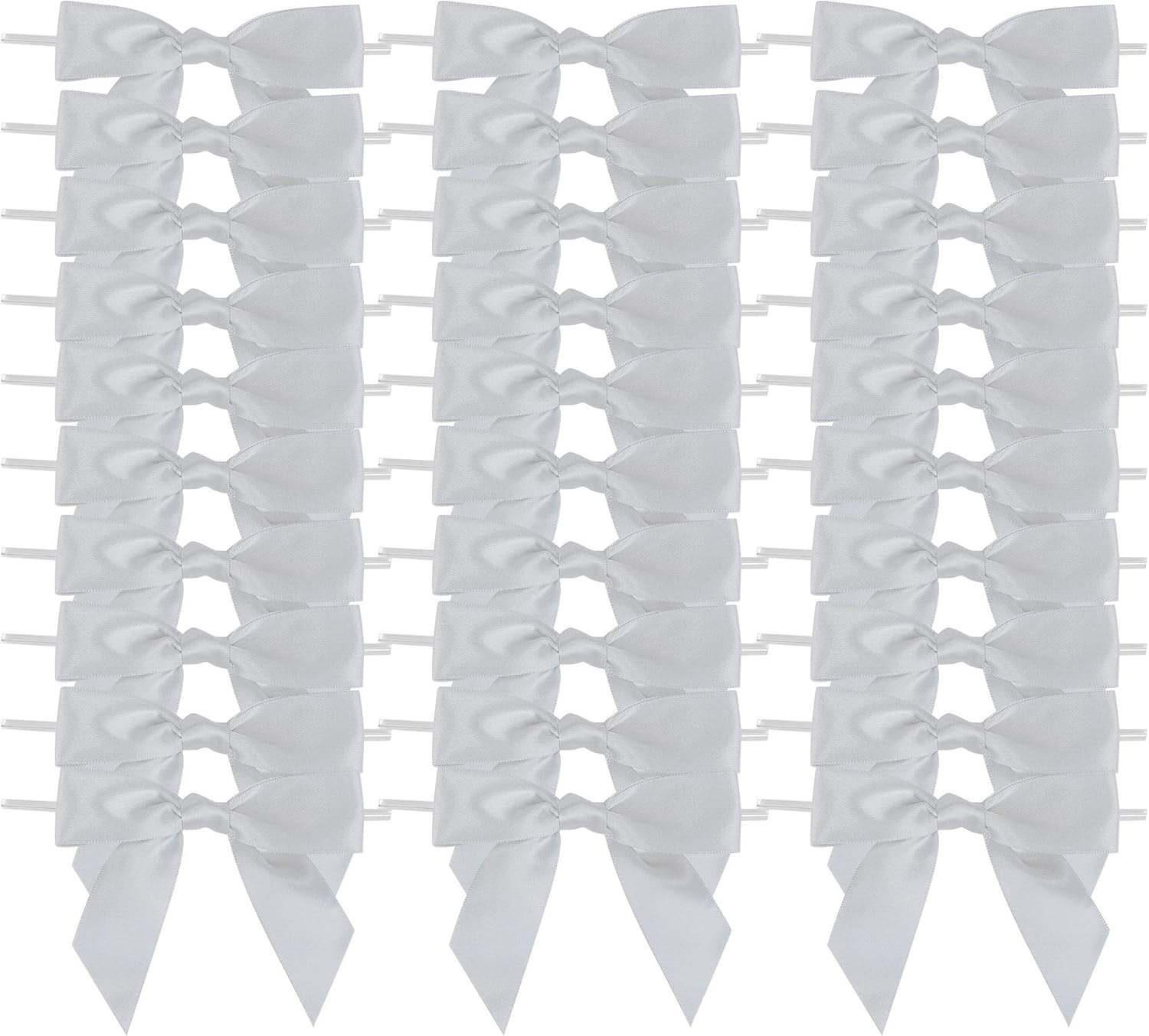 - [ Package Content ] You will receive 50 pieces silver satin bows with twist ties. Saving time from having to make the bows yourself.
