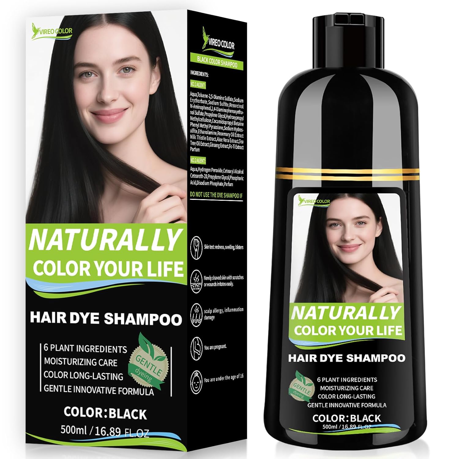 Black Hair Dye Shampoo for Women & Men, Gray Hair Coverage 3 in 1 Semi-Permanent Color with Natural Herbal Ingredients