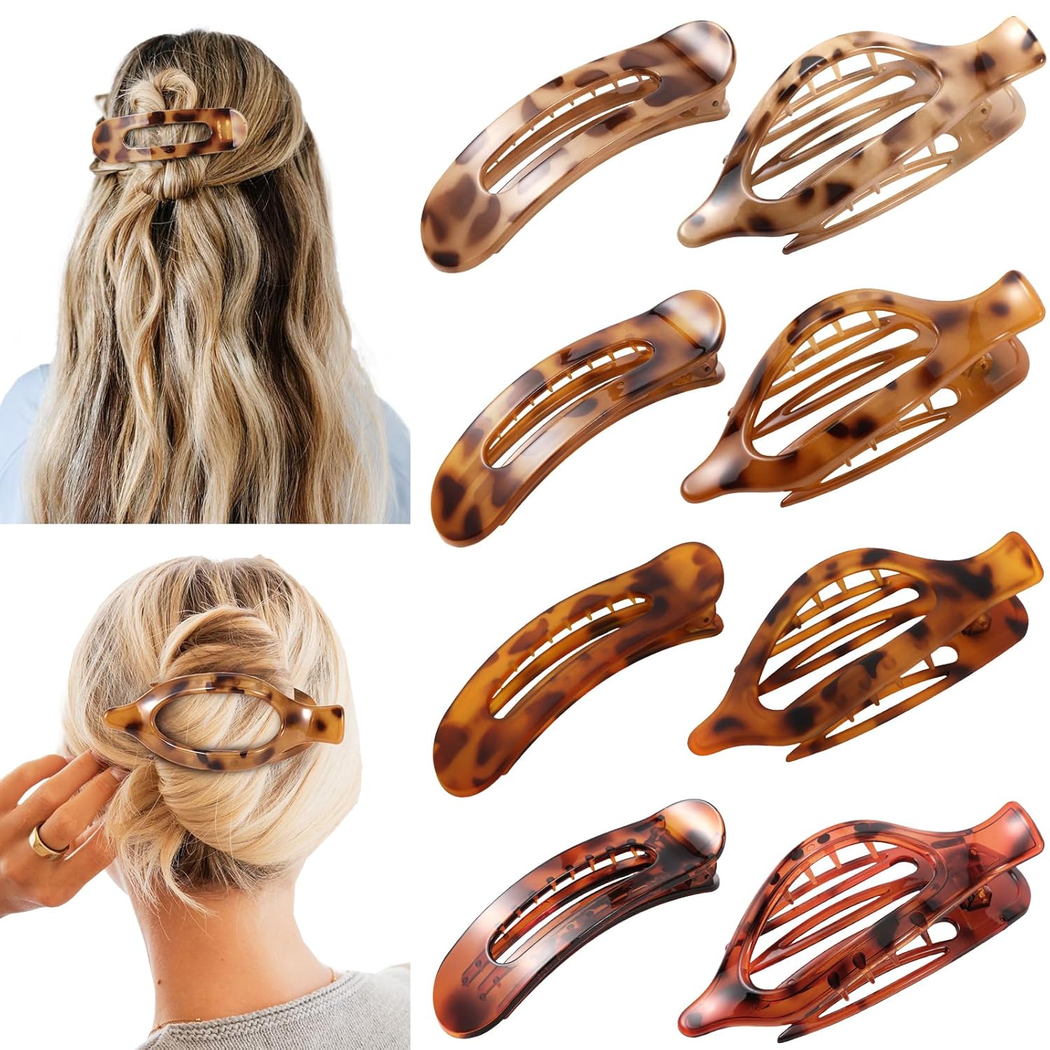- 2 Different Styles: Bessrung 8 PCS flat tortoiseshell hair clips come in 2 different styles, suitable for thin or thick hair. The large duckbill hair clip provides a secure hold for thick hair and full updos, while the small flat hair clip is perfect for half-up styles and fine hair.