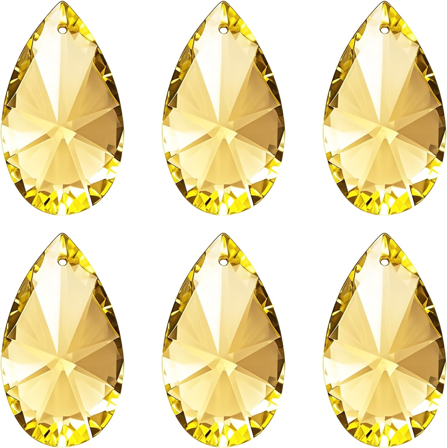 PATIKIL K9 Crystal Pendants Teardrop Beads, 6 Pack 38mm Chandelier Prisms Parts Hanging Beads DIY Lamp for Arts Crafts Decor, Golden Yellow
