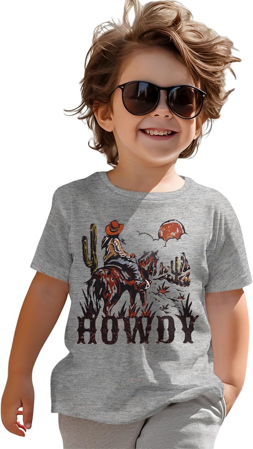 Howdy Shirts Toddler Baby Boys Rodeo Cowboy T-Shirt Western Retro Graphic Summer Tees Short Sleeve Tops