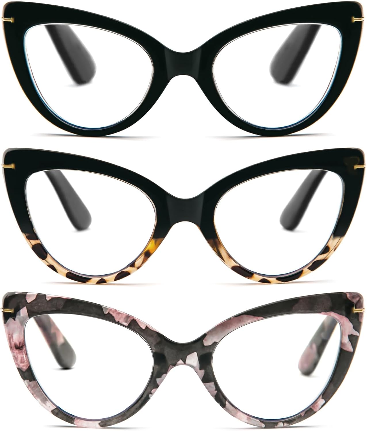 DXYXYO 3 Pack Reading Glasses Cat Eye Blue Light Blocking Women 2.5+, Oversized Fashion Anti Blue Readers Retro Cute Computer Eyeglasses
