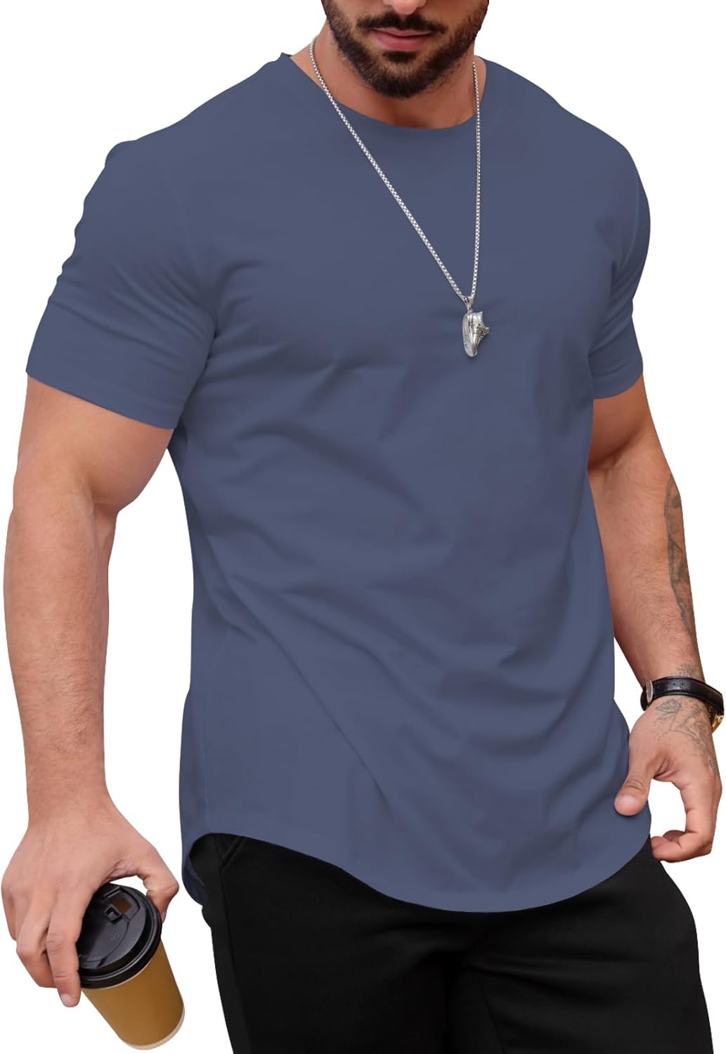 Mens T Shirts Casual Hipster Hip Hop Longline Crewneck Tee Shirts