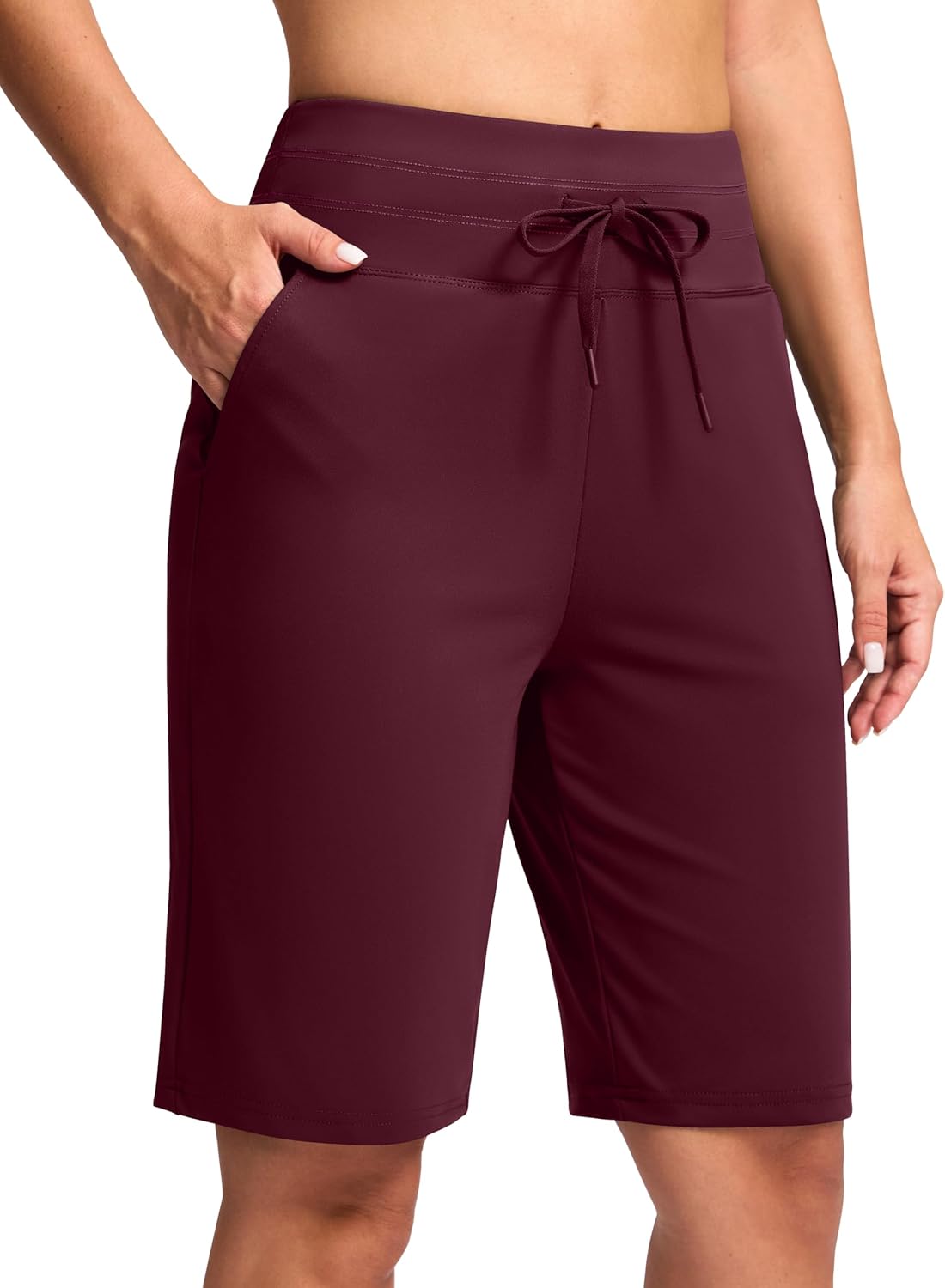 G GRADUAL Bermuda Shorts for Women with Pockets 10" Knee Length Womens High Waisted Long Shorts for Walking Athletic Workout