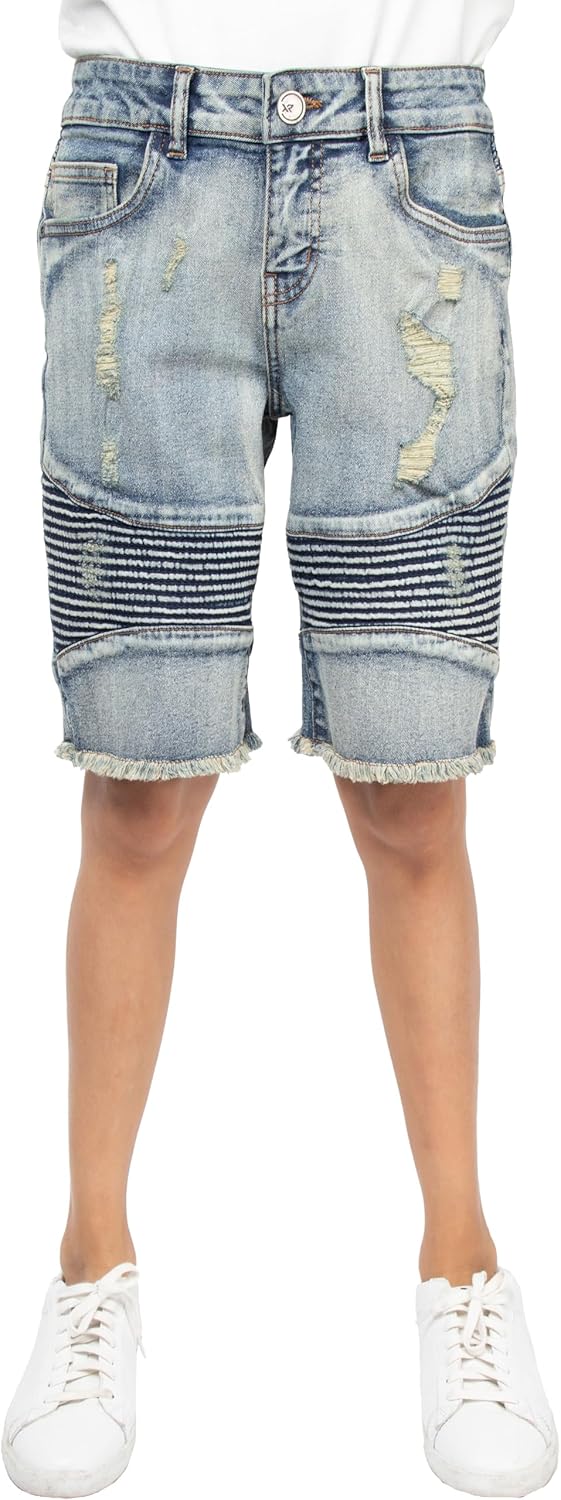 X RAY Baby Boys Toddler Shorts (2T - 4T), Elastic Waist Ripped Biker Moto Distressed Stretch Denim Short