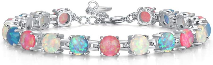 CiNily Rhodium Plated Fire Opal Women Jewelry Gemstone Bracelet 7"-8 1/2"