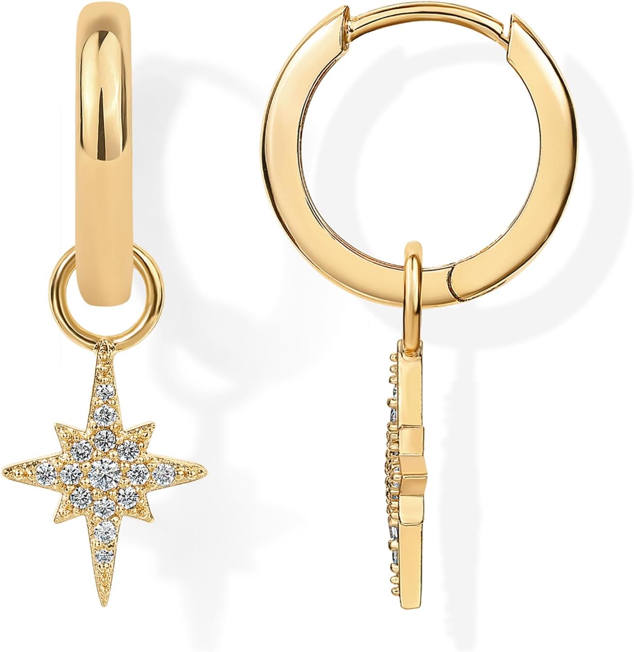PAVOI 14K Gold Plated S925 Sterling Silver Post Lightweight Drop Dangle Huggie Hoop Earrings for Women | Star, Lock, Pearl, Cross, Lightening, Coin | Dainty Earrings