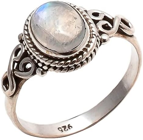 Avicrafts Rainbow Moonstone Ring 925 Sterling Silver Statement Ring For Women Handmade Gemstone Christmas Jewellery Gift For Her