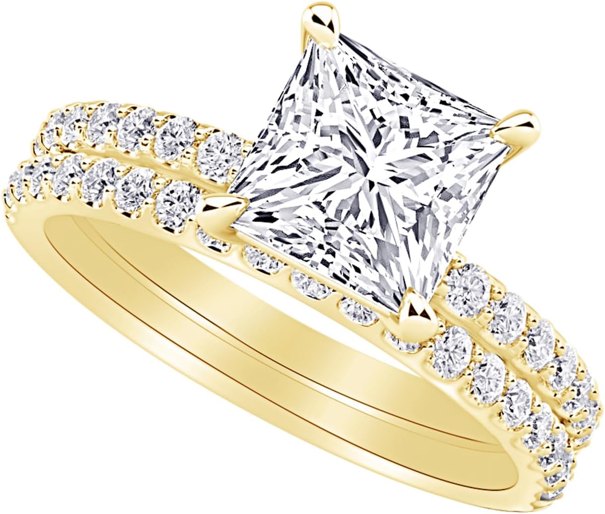 Houston Diamond District 1 to 6 Carat Princess LAB GROWN Diamond and LAB GROWN Diamond Wedding Bridal Set (AAAA Heirloom Quality)