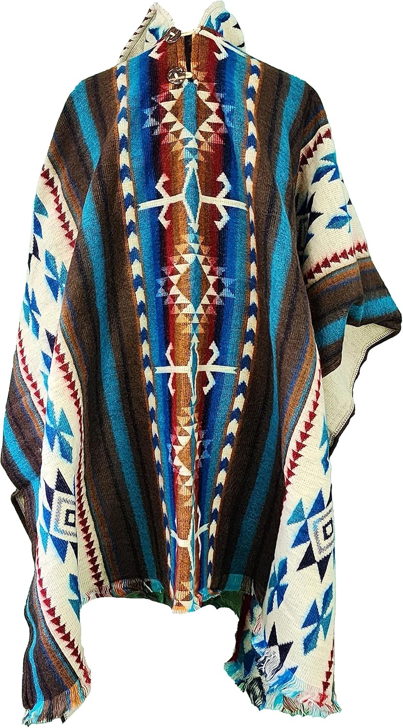 Alpaca Mens Poncho with Hood – Cowboy Serape Western Poncho - Clint Eastwood Poncho for Men - Ecuadorian Cloak with Hood Men