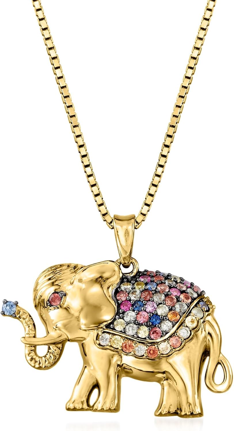 Ross-Simons 0.50 ct. t.w. Multicolored Sapphire Elephant Pendant Necklace in 18kt Gold Over Sterling. 18 inches