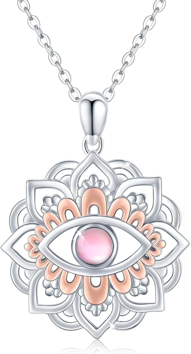 CUOKA MIRACLE Lotus Eye Necklace for Women Moonstone Evil Eye Lotus Protection Pendant 925 Sterling Silver Lotus Necklace Lotus Flower Charm Jewelry for Birthday Halloween for Women Men Teen