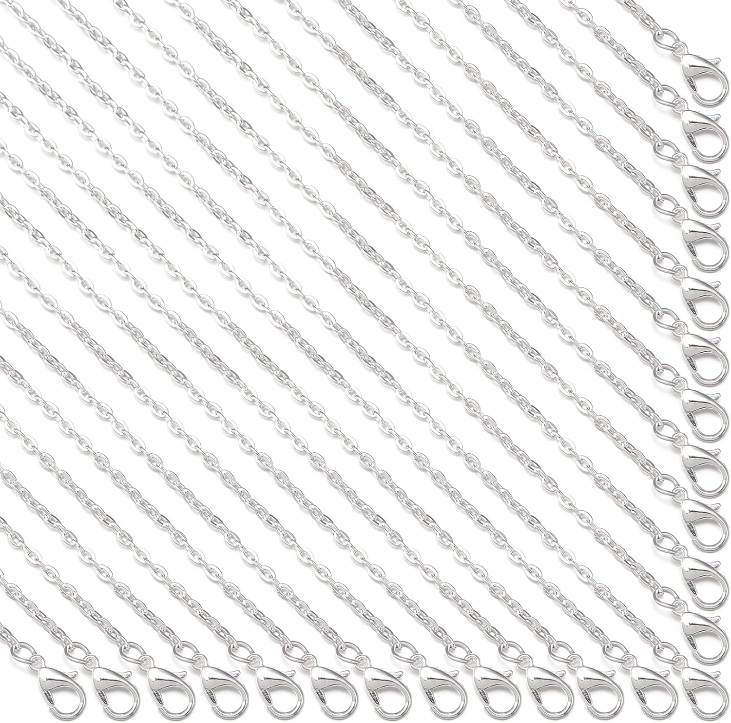 Forise 24pcs Necklace Chains Bulk 2mm Silver Plated Alloy Cable Links Chains for DIY Jewelry Making 18 Inches