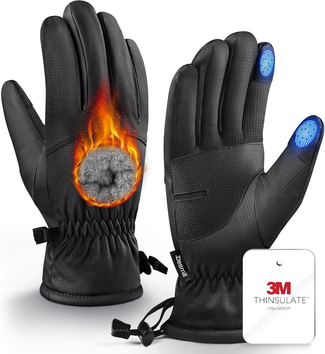 - ULTIMATE DEFEND, CONQUER THE COLD - Our gloves for cold weather boast an ultimate 4-layer thermal defend: leather outershell, 3M insulation, cotton, plush Lining. The 3M thermal is lightweight but can lock heat inside, providing 1.5X warmth of down. The soft plush lining is incredibly cozy and breathable, makes every touch delightful! The premium cotton (weighing up to 60g) adds extra warmth. Designed to keep you toasty down to -10°F, Deemii thermal gloves are your ultimate winter companion!