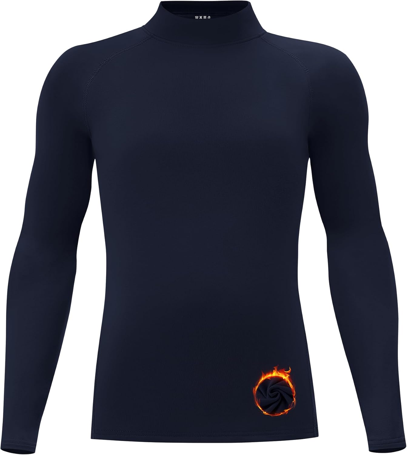 Youth Boys Thermal Compression Shirt Long Sleeve Fleece Undershirt Athletic Base Layer for Soccer Football Baseball
