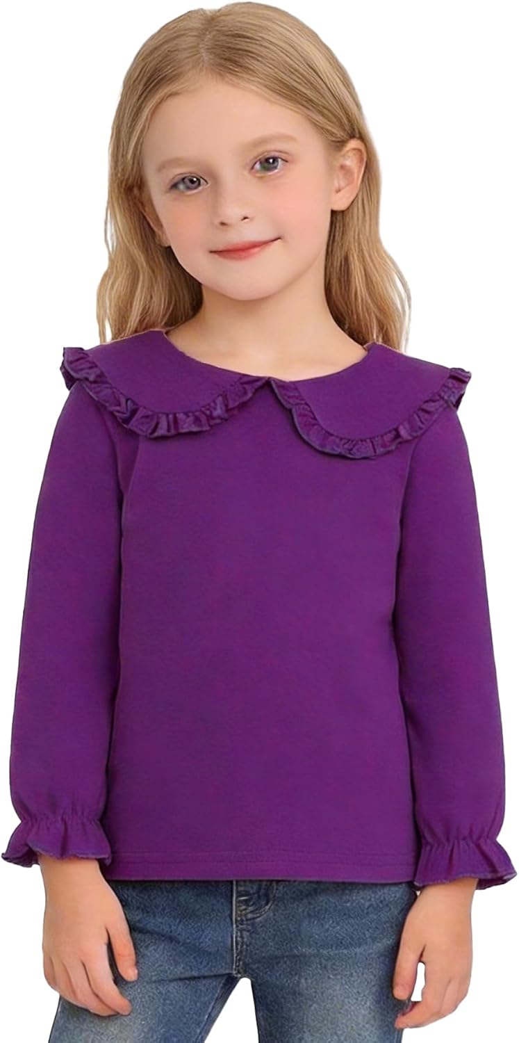 Magic Park 12M-14Y Toddler Girl Long Sleeve Blouse Girls Ruffle T-Shirt Solid Color Tee Casual Tops Holiday Winter Shirts