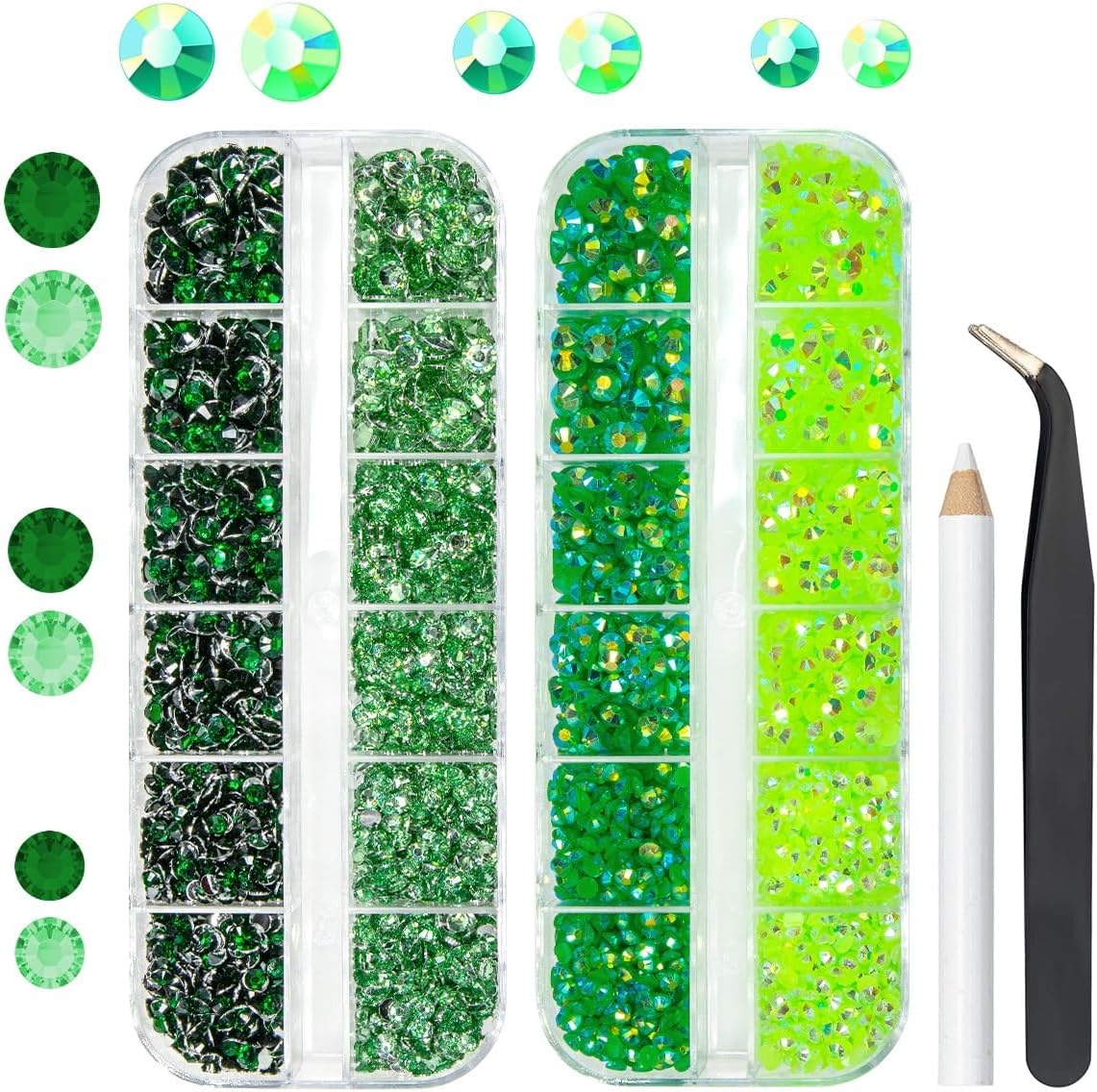 - ❤【Light Green & Dark Green Mega Collection】For those who love DIY crafts, a set of resin rhinestones with Green colors is always a favorite. The qiipii Green Series collection allows you to have 4 options in a low cost. Each color is carefully arranged in the box, making it visually appealing and pleasing to the eye. Opening the lid is like opening a box of green candy, helping you effortlessly unleash your creative imagination in your craftwork.