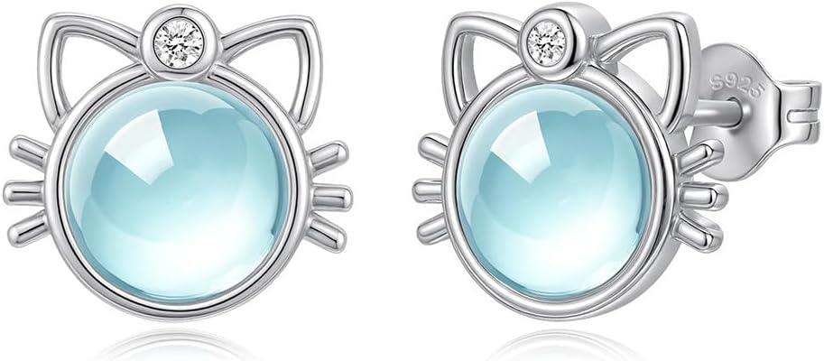 Cute Valentines Gift for Her, Cat Earrings for Women Teens Daughter 18K White Gold Plated 925 Silver Animal Pet Studs Hypoallergenic, Kitty Jewelry Birthday Gift for Cat Lover Mom Girlfriend