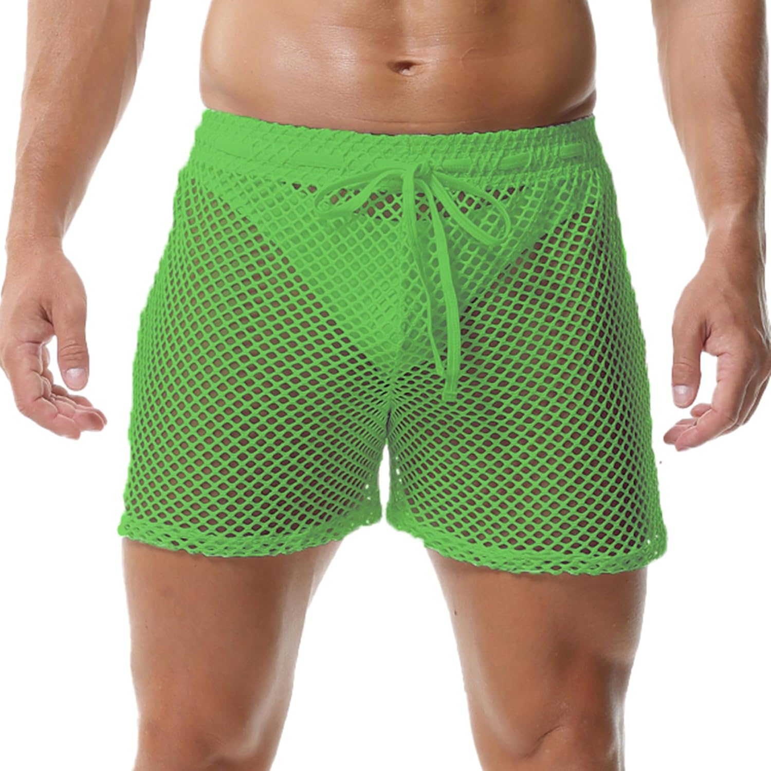 Mens Fishnet Boxer Shorts See Through Mesh Loose Shorts Lounge Underwear Boxer Trunks
