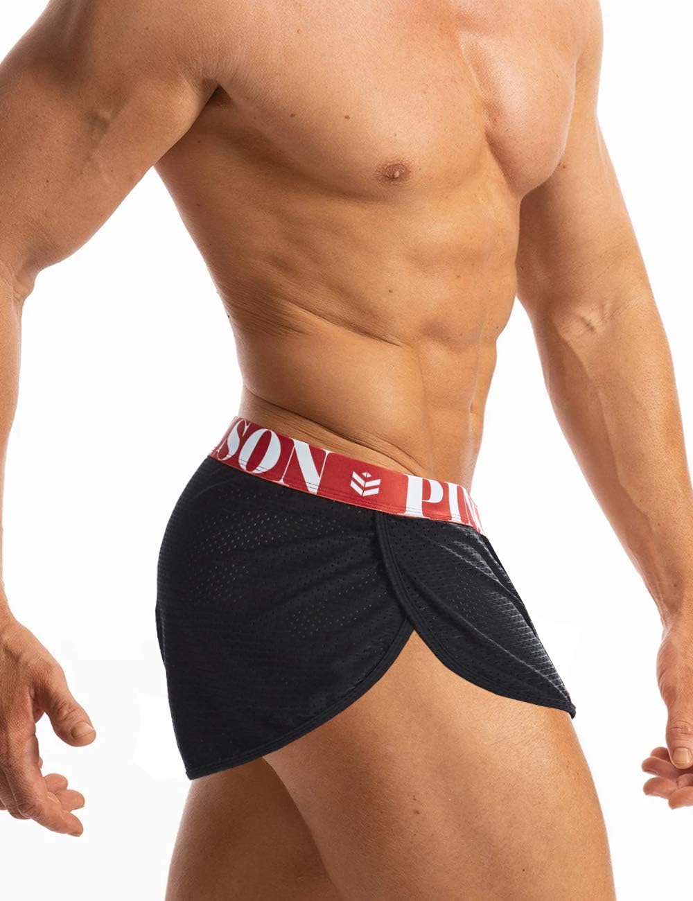 MIZOK Men's Slit Side Bodybuilding Shorts Breathable Mesh Workout Yoga Short