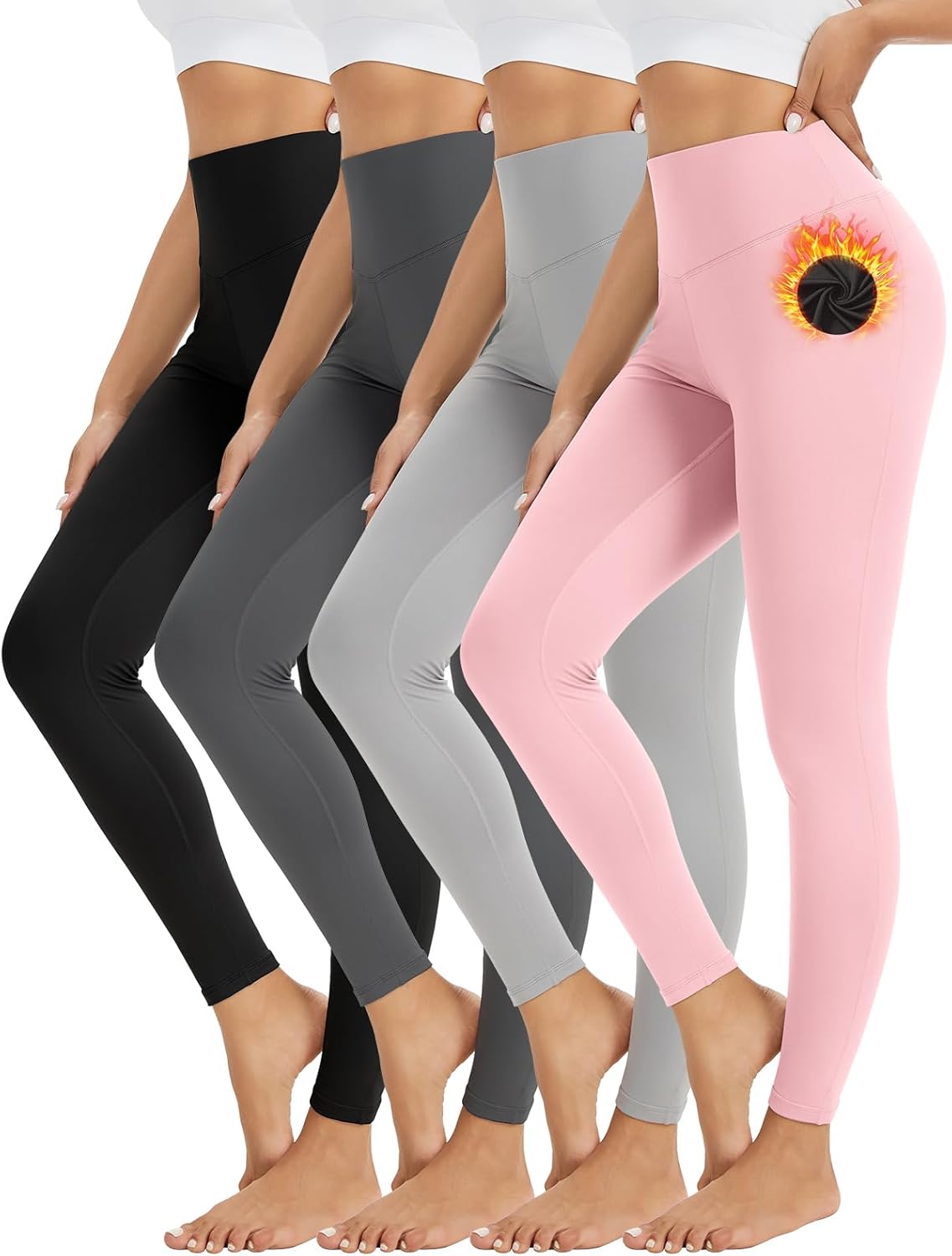 4 Pack Fleece Lined Leggings Women Thermal Warm Winter Tights High Waisted Yoga Pants Cold Weather Base Layer
