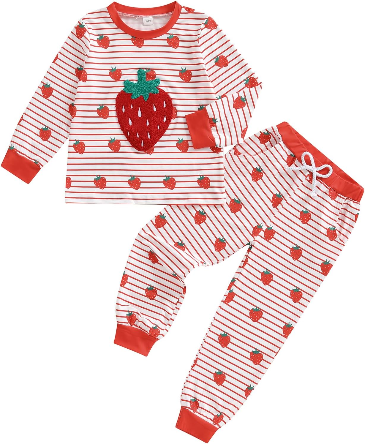 Lefyira Baby Girl Strawberry Outfit Striped Long Sleeve Top Pants Set Toddler Guitar Outfit Infant Fall Winter Clothes