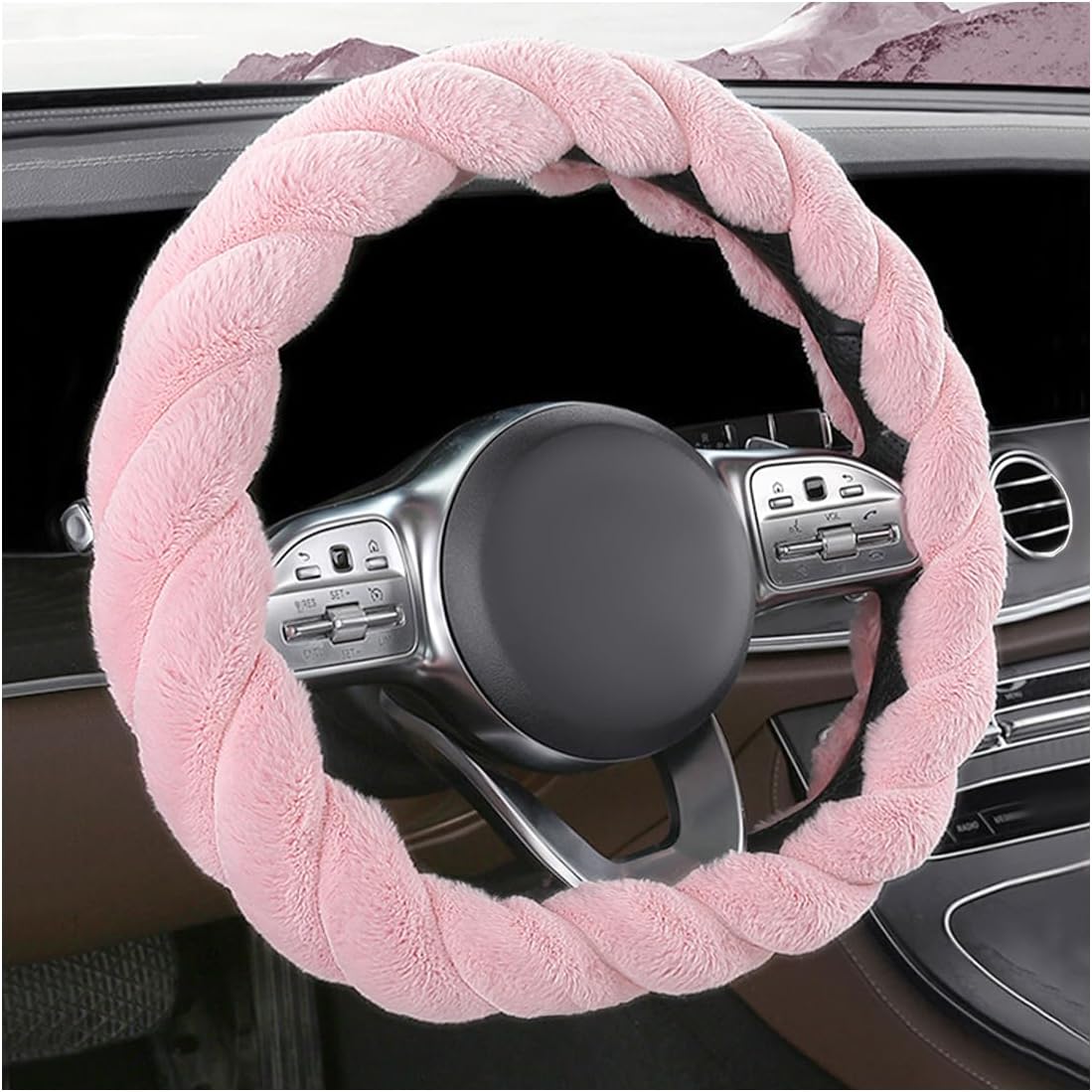 Fluffy Car Steering Wheel Cover, 15 Inches Anti-Slip Round Fuzzy Winter Steering Wheel Protector, Soft Warm Plush Steering Wheel Cover for Women Girls, Car Accessories (Pink, D-Shaped)