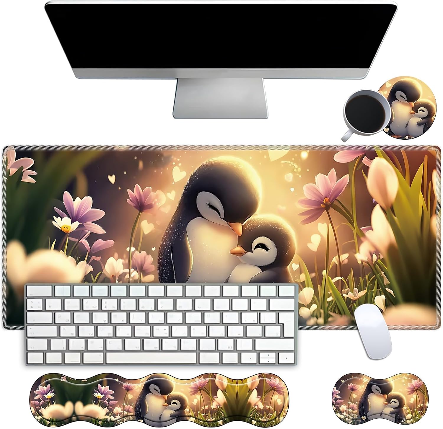 ![Desk Mat Large Gaming Mouse pad Set 31.5x11.8 inch [4in1Mousepad + Keyboard Wrist Rest+Mouse Wrist Rest+Coaster ] with Ergonomic Desk Pad for Home Office Table Computer - Cute Penguin - Image 4](https://m.media-amazon.com/images/I/71LNO9yx2vL._AC_SL1500_.jpg)
