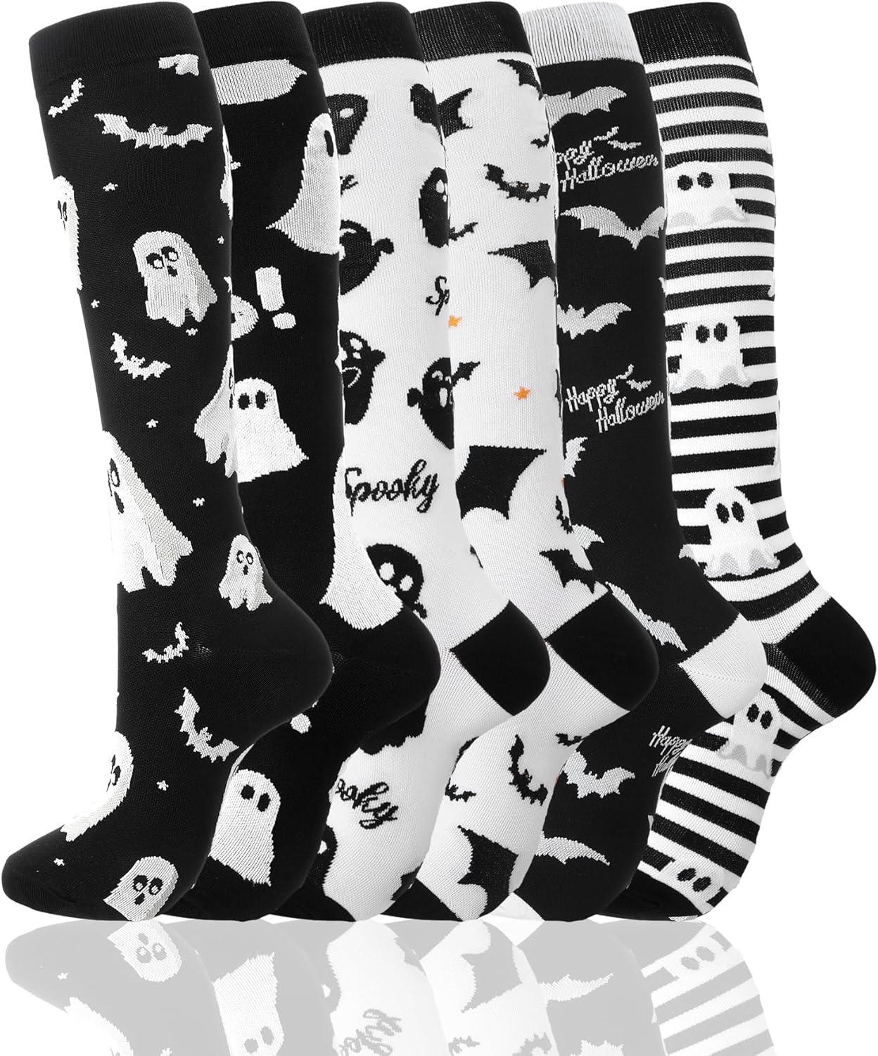 Halloween Socks Women Men Knee High Compression Socks for Halloween Nurses Running