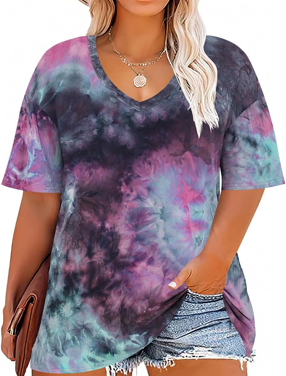 RITERA Plus Size Tops for Women Oversized Summer Basic V Neck Short Sleeve Henley Shirt Casual Tunic Shirts XL-5XL
