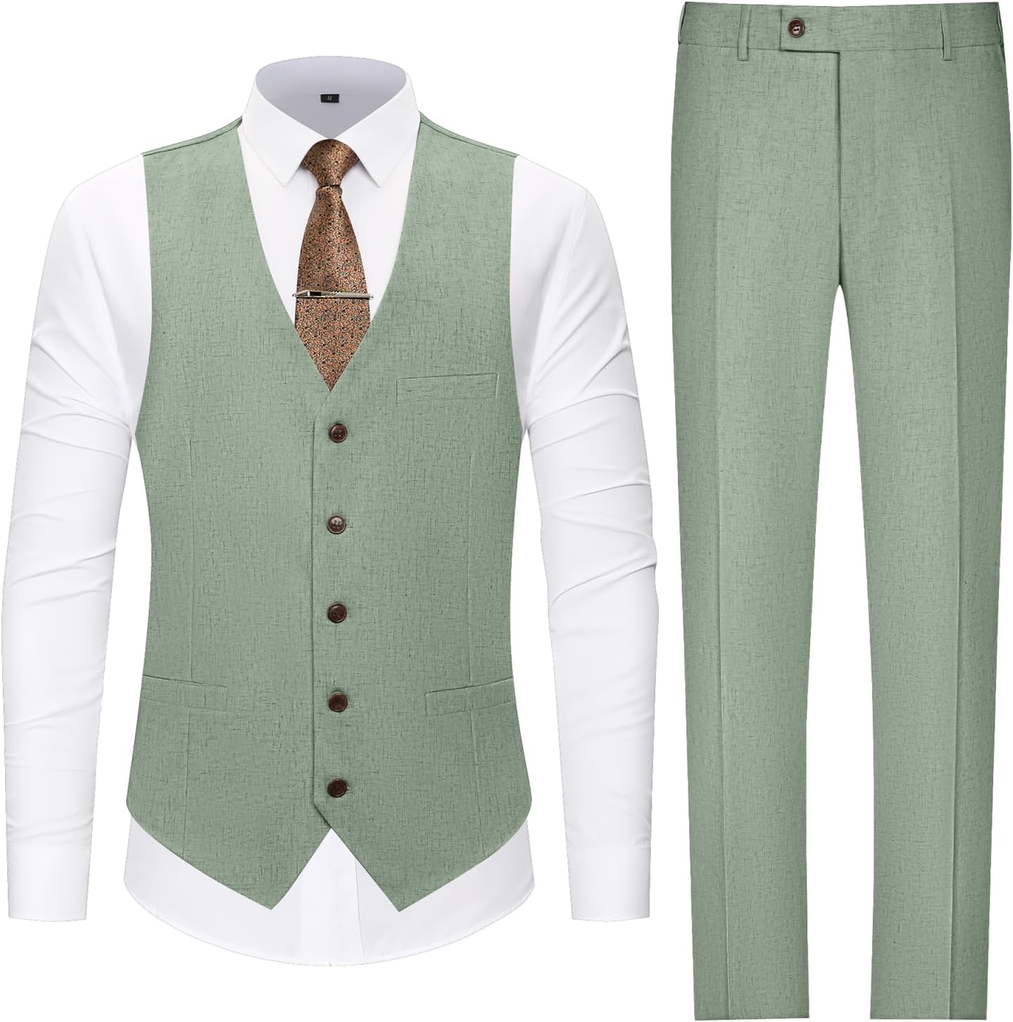 Men's Casual Linen Suit Set 2 Piece Slim Fit Wedding Suits Prom Groomsmen Suit Tuxedos Beach Suits Vest Pants
