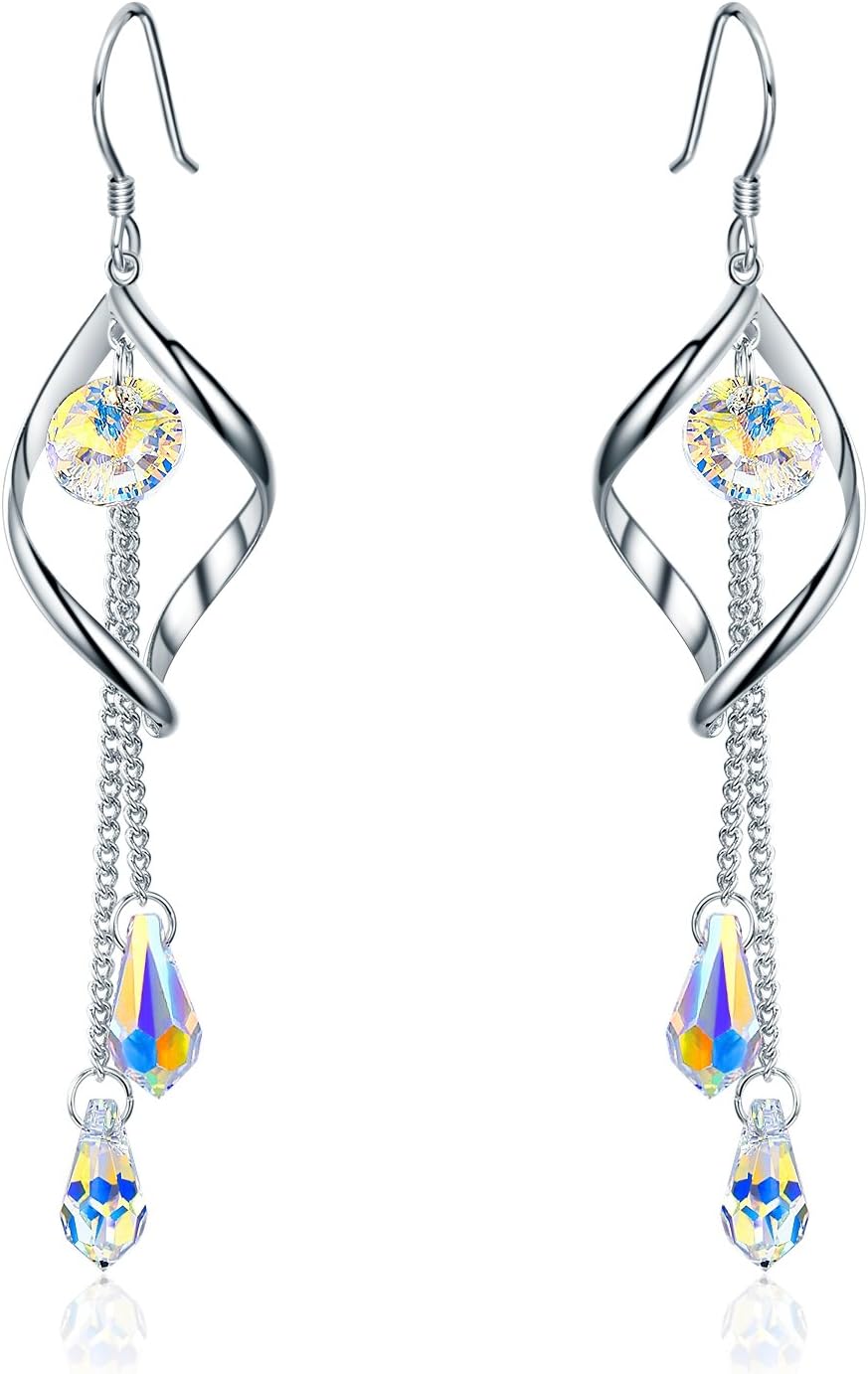 SBLING Platinum-Plated Color Change Multi-Teardrop Earrings Made with Aurora Borealis Austrian Crystals