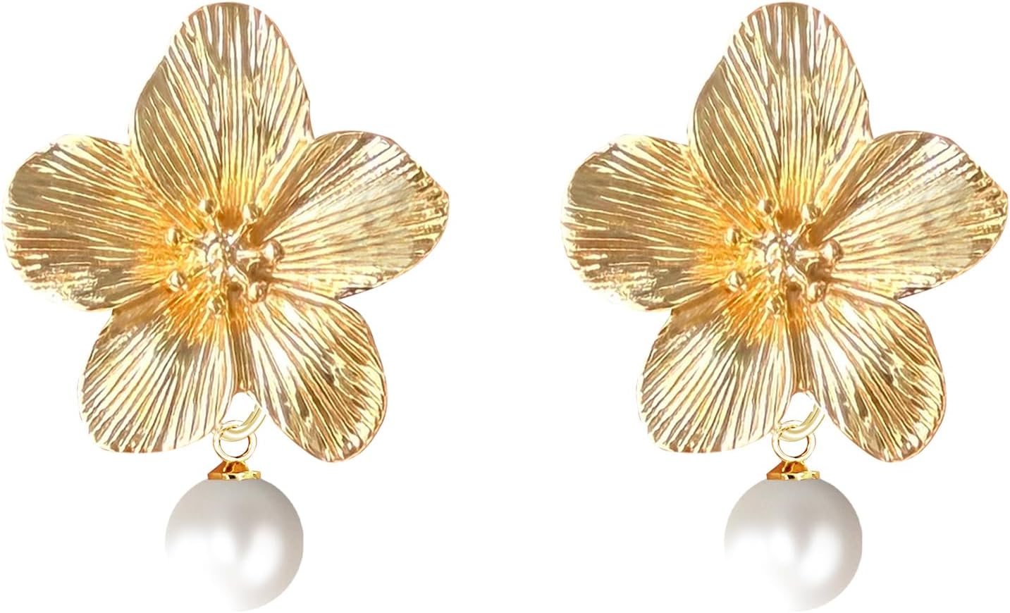 Flower Pearl Drop Earrings for Women Floral Gold Plated Dangle Bridal Studs Earrings Wedding Jewelry