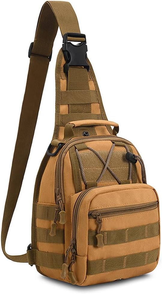 Viriber Tactical Backpack, Waterproof Military Cross-body Molle Sling Shoulder Backpack Chest Bag for Outdoor Every Day Carry Khaki