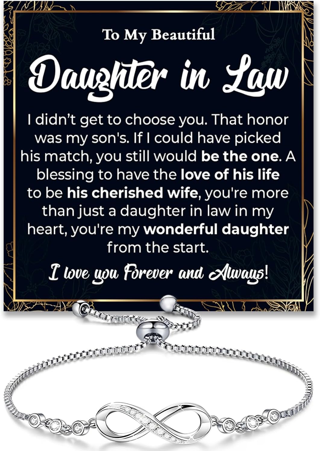 To My Daughter In Law Infinity Heart Bracelet From Mom And Dad, Wedding Christmas Anniversary Birthday Gift For Daughter In Law, Bracelet With Message Card And Gift Box From Mother-In-Law