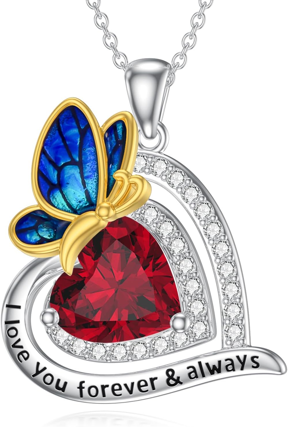 Heart Butterfly Necklaces for Women 925 Sterling Silver I Love You Forever and Always Double Heart Pendant Necklace for Christmas Mothers Day, 18''-20''