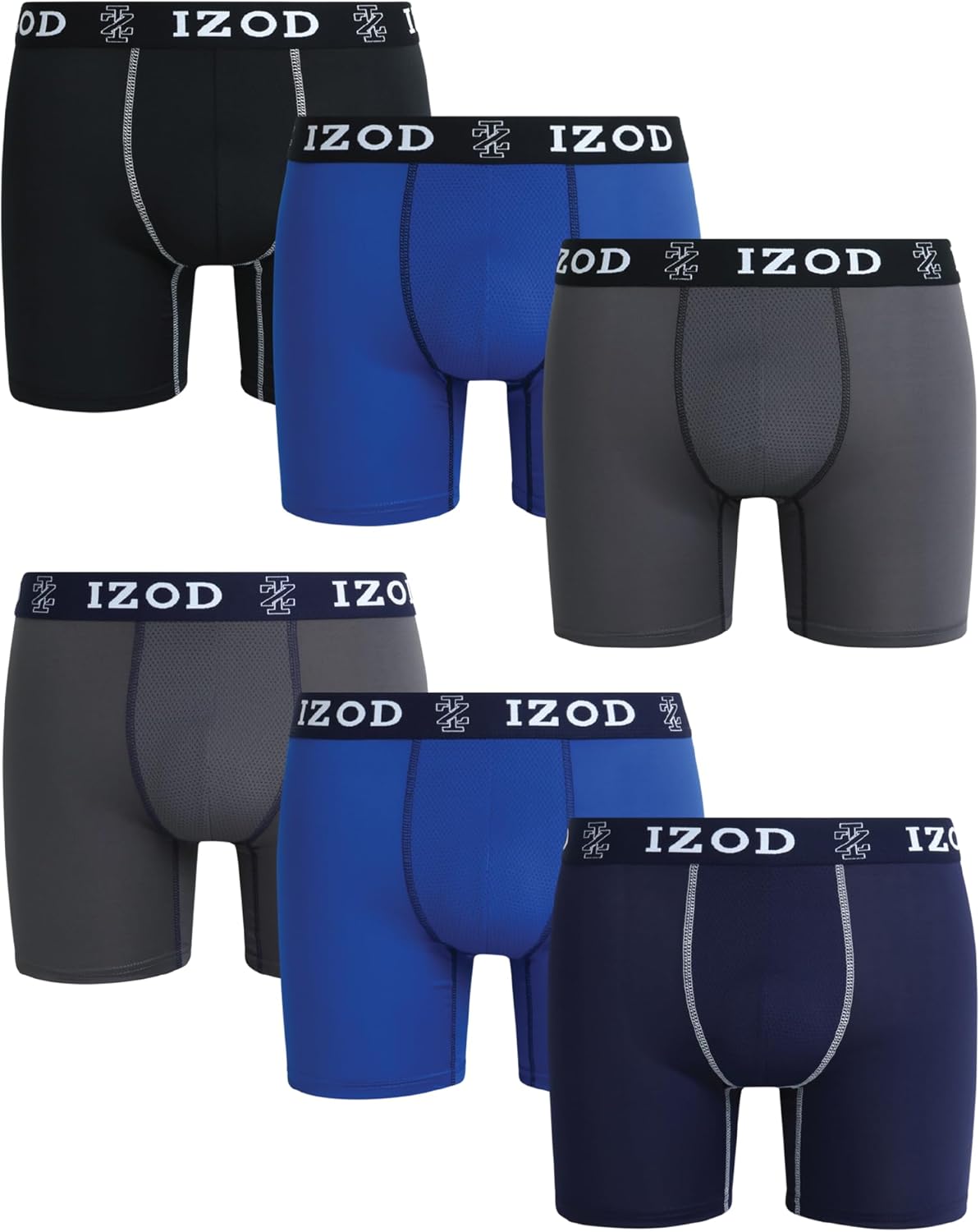 IZOD Mens Boxer Briefs - 6 Pack Ultra Soft Stretch Performance Mens Underwear Boxers with No Fly Contour Pouch, 6" Inseam