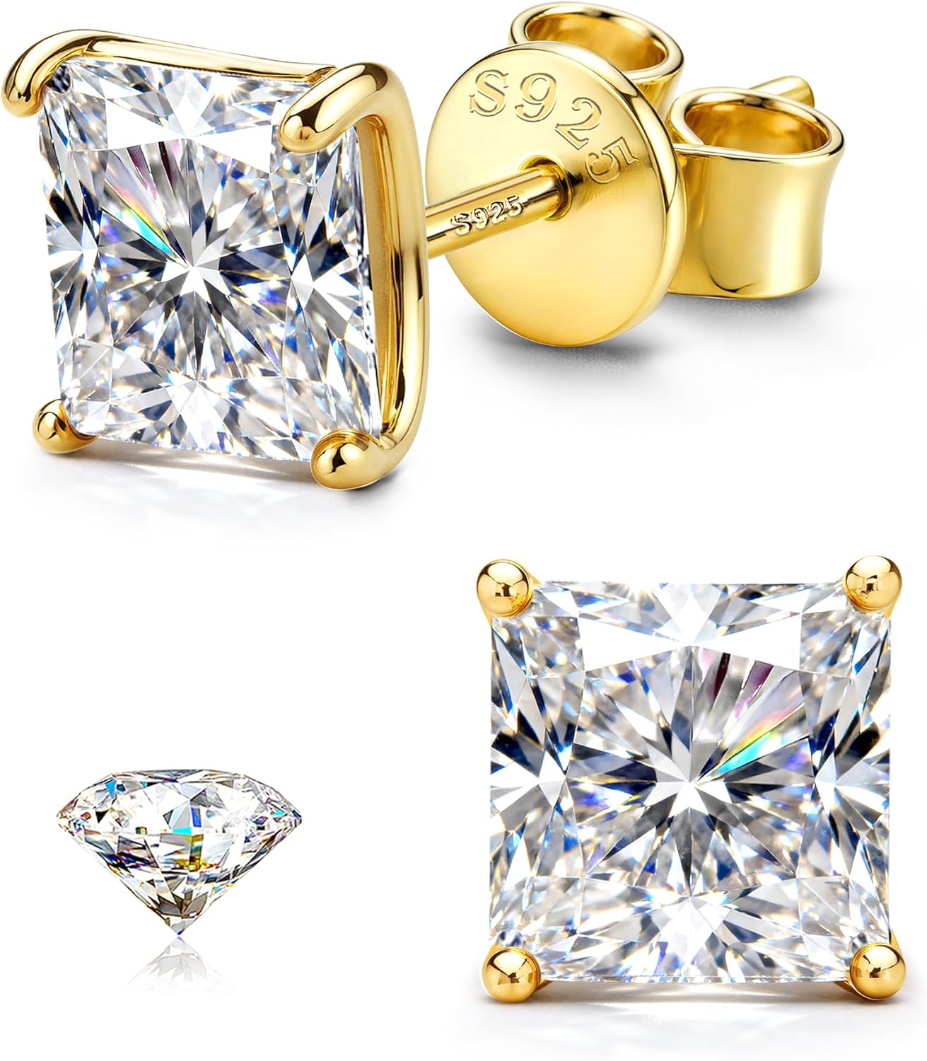 Moissanite Earrings Studs : 18K Gold Plated S925 Sterling Silver Stud Earring for Women Men Moissanite Jewelry Hypoallergenic Brilliant Princess Cut D Color VVS1 0.8CT-3.2CT