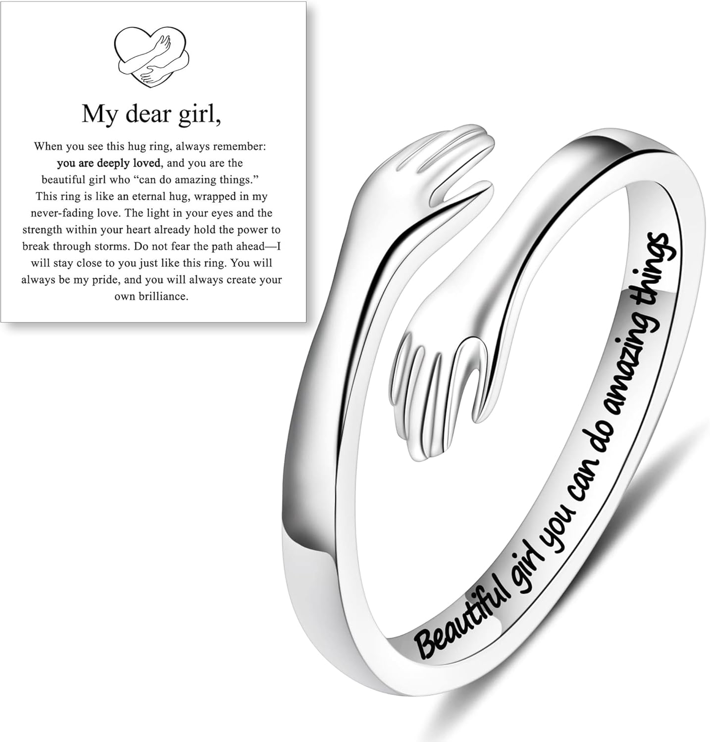 M MOOHAM Valentines Gifts for Kids Teen Girls - S925 Sterling Silver Hug Ring With Card, Adjustable Hope Rings Jewelry Birthday Gifts for Women Daughters Granddaughters Friend Wife